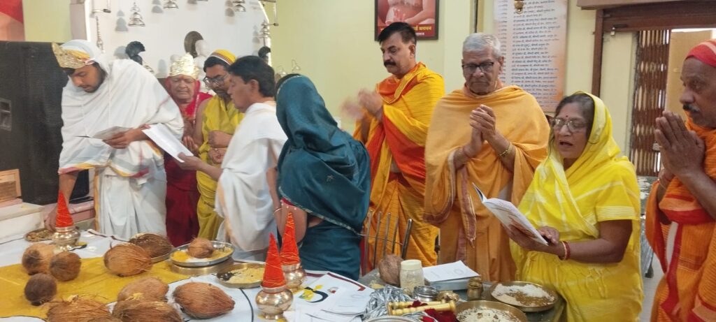 दिगंबर जैन पंचायत के सचिव सूर्यकांत जैन ने जानकारी देते हुए बताया कि प्रातः 7:00 बजे मुलायक भगवान 1008 श्री नेमिनाथ भगवान का अभिषेक एवं शांति धारा यहां विराजमान आर्यिका श्रेष्ठ 105 सिद्धांत मति माताजी, विनीत पति माताजी, एवं विनय मति माताजी के मुखारविंद से संपन्न हुई ।इसके पश्चात आचार्य श्री की पूजन एवं आचार्य छत्तीसी विधान माताजी के ससंघ सानिध्य में संपन्न हुआ ।