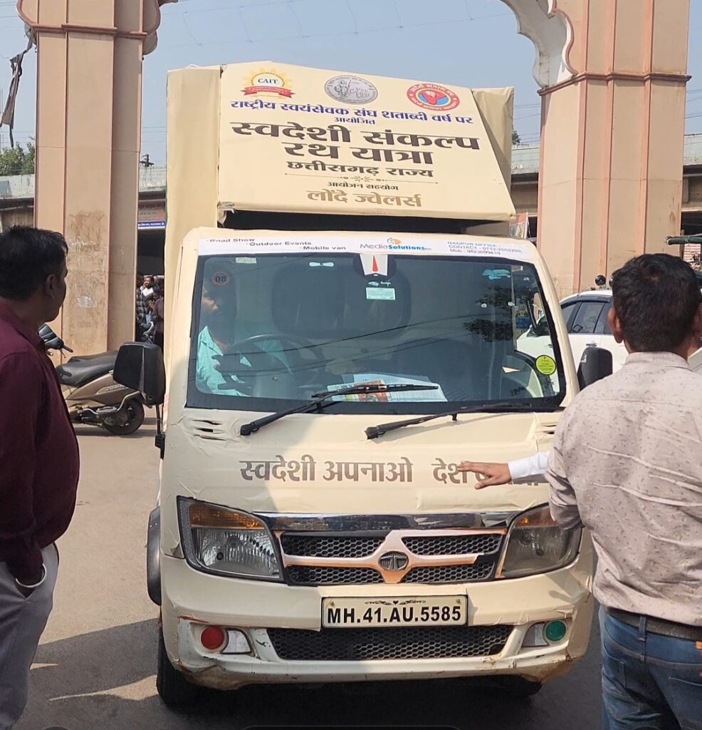 यात्रा का व्यापक उद्देश्य कैट जिला अध्यक्ष राजू डागा ने कहा कि यह रथ यात्रा छत्तीसगढ़ में 27 नवंबर से 21 दिसंबर तक लगभग 2500 किलोमीटर का सफर तय करेगी और जन-जन में स्वदेशी चेतना जगाने का संदेश प्रसारित करेगी “स्वदेशी अपनाएँ – राष्ट्र को आत्मनिर्भर बनाएँ