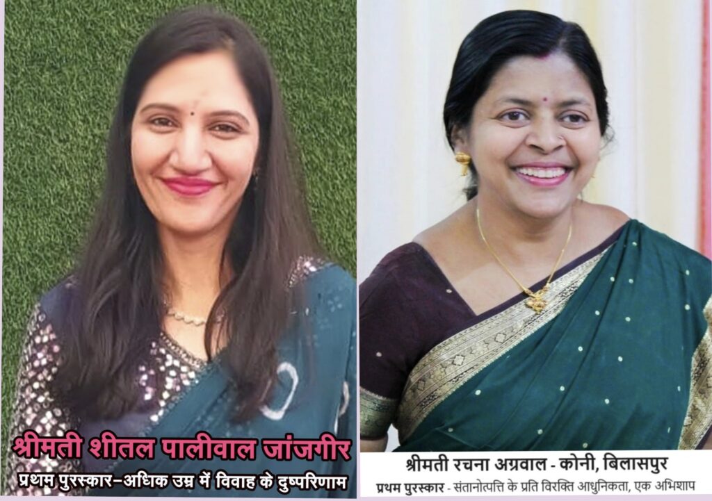 छत्तीसगढ़ प्रांतीय अग्रवाल संगठन के अध्यक्ष नेतराम अग्रवाल , महामंत्री मनोज अग्रवाल एवं हेमलता मित्तल के संयोजकत्व में आयोजित प्रतियोगिता के परिणाम राजस्थान के अलवर एवं उदयपुर के प्रोफेसर के द्वारा उक्त प्रतियोगिता के लिए प्राप्त निबंधों का अध्ययन , मनन एवं चिंतन कर आज निर्णय की घोषणा की गई । जिसके अनुसार पहले विषय अधिक उम्र में विवाह के दुष्परिणाम के लिए प्रथम स्थान जांजगीर निवासी शीतल पालीवाल को प्राप्त हुआ ,