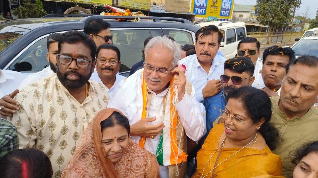 अखिल भारतीय कांग्रेस कमेटी के महासचिव पंजाब प्रभारी पूर्व मुख्यमंत्री भूपेश बघेल आज ग्राम चिखली एवं डोंगरगढ़ जाते समय स्थानीय रामदरबार चौक में कांग्रेसजनों ने स्वागत किया।शहर कांग्रेस कमेटी के पूर्व महामंत्री अमित चंद्रवंशी ने विज्ञप्ति के माध्यम से बताया कि ग्राम चिखली बांधाबाजार में आज सामूहिक आदर्श विवाह,स्नेह सम्मेलन एवं प्रतिभा सम्मान में मुख्य अतिथि के रूप में शामिल होकर उसके पश्चात डोंगरगढ़ में स्थित मां बम्लेश्वरी के दर्शन के लिए जाते समय स्थानीय रामदरबार चौक में कांग्रेसजनों द्वारा फूल मालाओं से अभिनंदन किया।