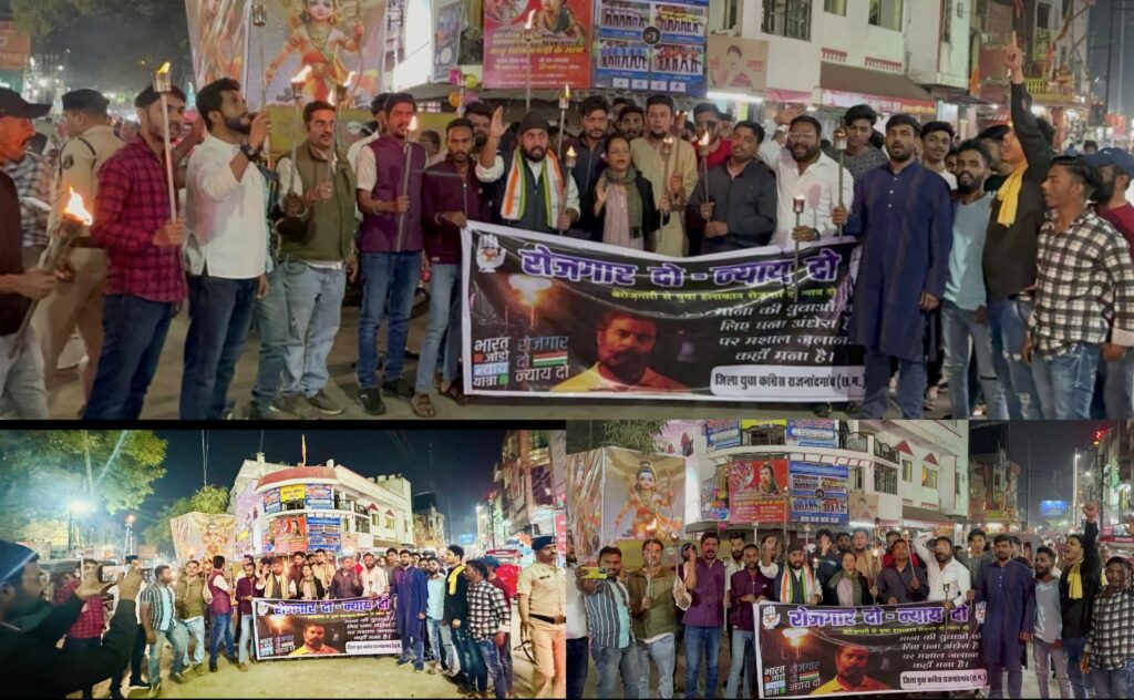 बढ़ती बेरोजगारी के विरोध में युवा कोंग्रेसियो ने निकाली मशाल रैली