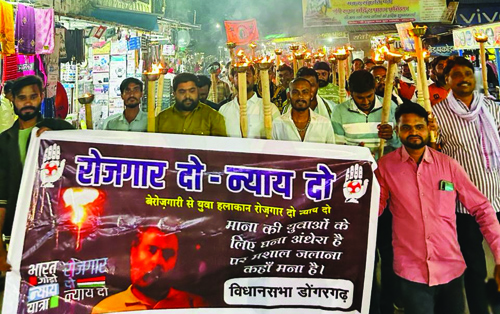 बढ़ती बेरोजगारी के विरोध डोंगरगढ़ विधानसभा युवा कांग्रेस का रोजगार दो न्याय दो मसाल रैली