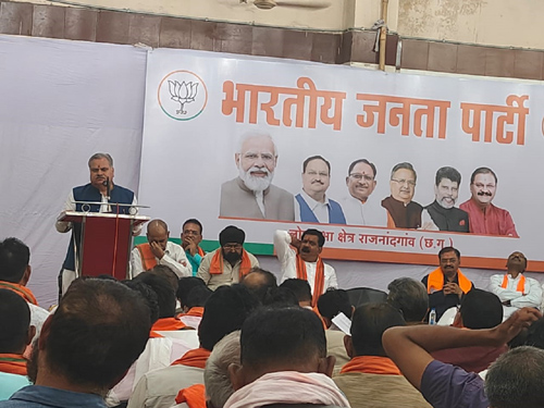 मीडिया सेल द्वारा दी गई जानकारी के अनुसार महाजन वाडी, राजनांदगांव में आयोजित बैठक में क्षेत्रीय संगठन महामंत्री अजय जामवाल ने कहा कि भारतीय जनता पार्टी का कार्य ईश्वरीय कार्य है, हम राजनीति में सत्ता सुख प्राप्त करने के लिए नहीं, बल्कि भारत को परम वैभव के शिखर पर ले जाने हेतु स्थापित किया करते हैं। भारत में वर्षों से गरीबी एवं भ्रष्टाचार फैला हुआ था, जिसे मिटाकर भारत को पुनः विश्व गुरु बनाने के लिए आत्मनिर्भर भारत की परिकल्पना को लेकर केंद्र में विगत 10 वर्षों से श्री मोदी के नेतृत्व में भाजपा की सरकार कार्यरत है, जो देश के भ्रष्टाचार एवं गरीबी को मिटाने के लिए दृढ़ संकल्पित है।
