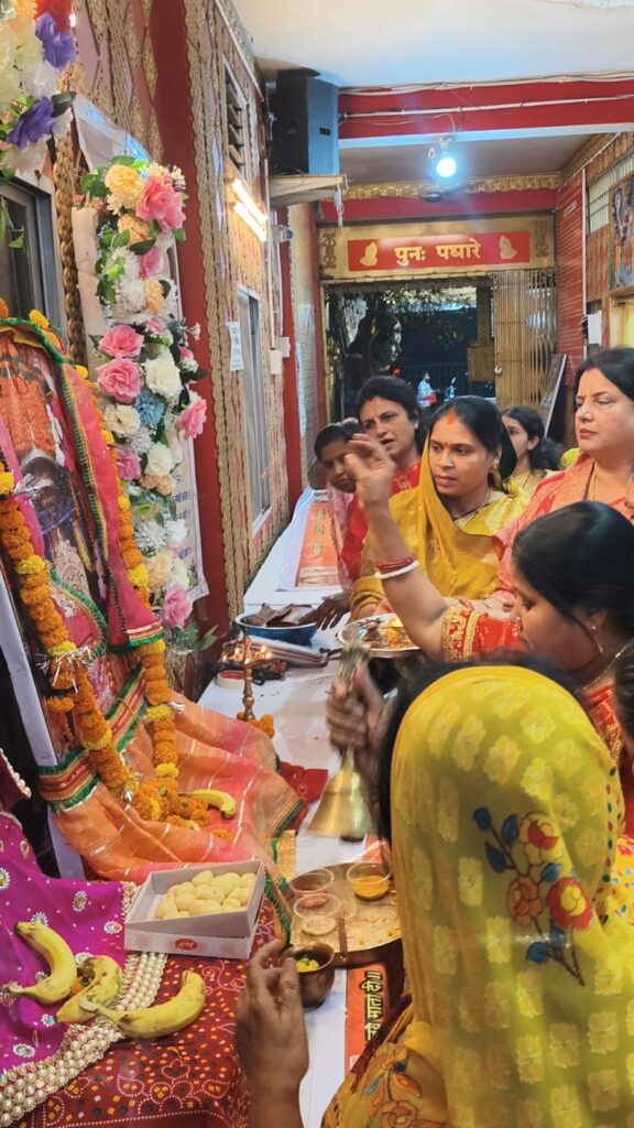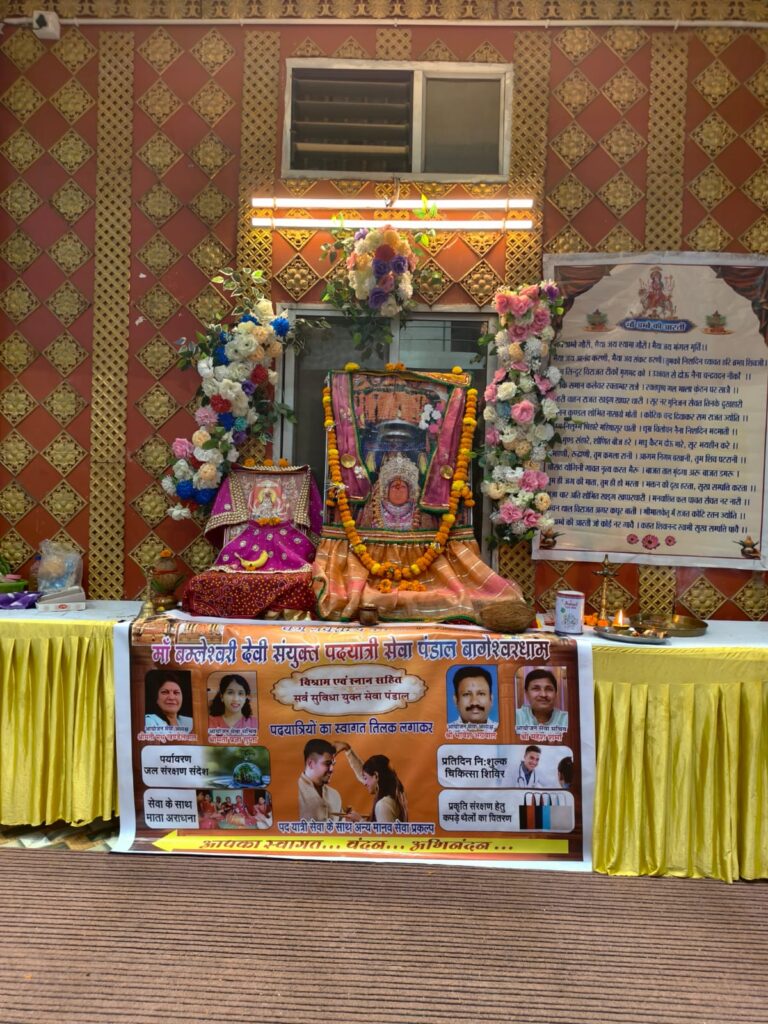 मां बमलेश्वरी देवी पदयात्रि संयुक्त सेवा पंडाल बागेश्वर धाम में कन्या पूजन कर शहर की नौ समाज महिला अध्यक्षों द्वारा सेवा पंडाल का उद्घाटन