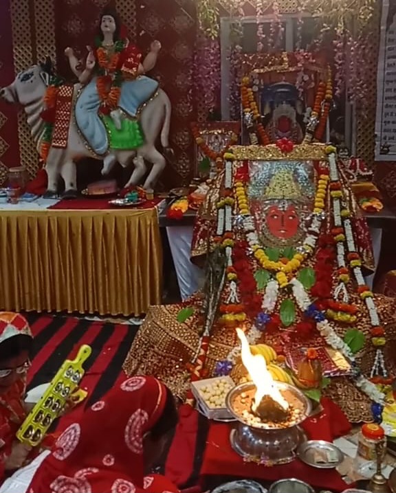 शक्ति, भक्ति, आराधना, उपासना साधना के पंचामृत से मां जीण भवानी माता का अभिषेक एवं मंगल पाठ का आयोजन बागेश्वर धाम संयुक्त सेवा पंडाल में जीण माता महिला मंडल द्वारा