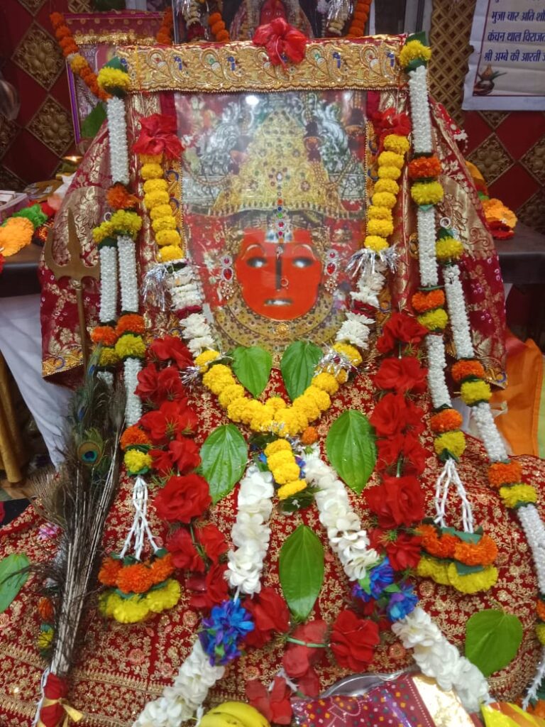 क्वांर नवरात्र महोत्सव के चतुर्थ नवरात्र में मां जीण भवानी माता का मंगल पाठ मां जीण भवानी महिला मंडल द्वारा किया गया पंच परमेश्वरी देवी मां बमलेश्वरी देवी, शैलपुत्री, माता सरस्वती, माता लक्ष्मी व जीण भवानी का सप्तरंगी पुष्पों एवं पान के पत्तों से मातारानी का दिव्य भव्य मनमोहक अलौकिक नयनाभिराम दरबार सजाया गया उपस्थित भक्तों ने ,शक्ति , भक्ति, आराधना , उपासना , साधना के पंचामृत से मां जीण भवानी माता का अभिषेक करते हुए माता की दिव्य ज्योत जलाकर भक्तों ने आहुति दि माता की भक्ति में लीन होकर मां जीण भवानी माता का मंगल पाठमाता बहनों एवं सैकड़ों कि संख्या में उपस्थित मां बमलेश्वरी देवी पदयात्रीयो ने मातारानी के मंगल पाठ में भक्ति-भाव से डूबकर भक्ति का गोता लगाया