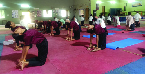 राजनांदगांव।शासकीय कमलादेवी राठी स्नातकोत्तर महिला महाविद्यालय, राजनांदगांव के क्रीड़ा विभाग, राष्ट्रीय सेवा योजना, एनसीसी के सौजन्य से 21 जून 2023 को अंतर्राष्ट्रीय योग दिवस मनाया गया। इस महत्वपूर्ण कार्यक्रम में समस्त महाविद्यालयीन स्टॉफ, छात्राएं एवं अन्य सदस्यों ने भाग लिया। कार्यक्रम के प्रारंभ के प्राचार्य डॉ. आलोक मिश्रा द्वारा योग की महत्ता पर प्रकाश डाला गया तथा सभी को अंतर्राष्ट्रीय योग दिवस की शुभकामनाएं दी गई। योग प्रशिक्षक खिलेन्द्र कुमार सोनी ने शासन द्वारा जारी योगाभ्यास कम (प्रोटोकॉल) के अनुसार विभिन्न आसन जिसके अंतर्गत वृक्षासन, पादहस्तासन, अर्धचकासन, त्रिकोणासन, भद्रासन, वज्रासन, उष्ट्रासन, शाशकासन, शवासन एवं प्राणायाम के अंतर्गत कपालभाति, अनुलोम विलोम, भ्रामरी प्राणायाम, शीतली प्राणायाम आदि कराया एवं उससे होने वाले लाभ के बारे में जानकारी दी।