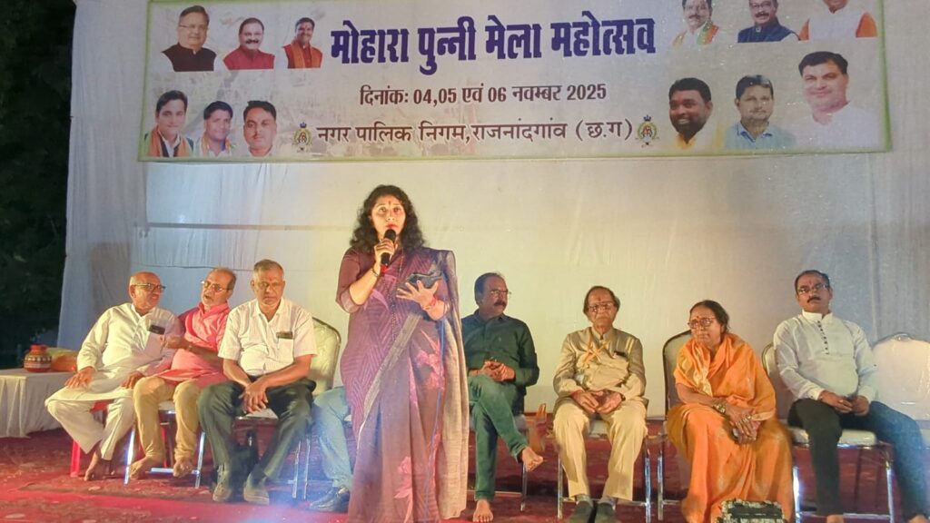 मोहारा पुन्नी मेला के समापन अवसर पर सांस्कृतिक कार्यक्रम में पूर्व पार्षद श्रीमती प्रज्ञा गुप्ता द्वारा छत्तीसगढ़ी