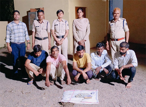 राजनांदगांव। पुलिस अधीक्षक मोहित गर्ग के निर्देश एवं अतिरिक्त पुलिस अधीक्षक राहुल देव शर्मा तथा पुलिस अनु. अधिकारी डोंगरगांव दिलीप सिंह सिसोदिया के मार्गदर्शन एवं थाना प्रभारी डोंगरगांव निरीक्षक उपेन्द्र कुमार शाह के नेतृत्व क्षेत्र में चोरी, लुट, अवैध शराब बिक्री, जैसे संवेदनशील मामलों पर नजर रखी जा रही है, कि दिनांक 1 अप्रैल 2024 को थाना डोंगरगांव पुलिस के द्वारा प्राप्त मुखबीर सूचना पर ग्राम खुज्जी के छोटे आमा बगीचा के बीच छांव में जुआ के फड पर अचानक पुलिस टीम के द्वारा घेराबंदी कर रेड कार्यवाही कर 5 जुआरियानों को रंगे हाथों धर दबोचा एवं जुआरियान आरोपी के पास से व जुआ के फड से कुल नगदी 13780 रूपये एवं 52 पत्ती ताश व सफेद रंग के प्लास्टिक की एक बोरी को जप्त कर जुआरियान दिनेश सिंह परिहार पिता बृजलाल परिहार, उम्र. 40 साल, पता-राजपुत पारा, ग्राम दर्री, शेषनारायण ठाकुर पिता खोरबाहरा राम ठाकुर, उम्र-35 साल, पता-ग्राम खुज्जी, गोविंद कुमार पिता अनुजराम, जाति हल्बा, उम्र-26, पता-ग्राम संबलपुर, विनय देवांगन पिता कुंदन देवांगन, उम्र-30 साल, पता-ग्राम खुज्जी एवं अक्षय कुमार देवांगन पिता लक्ष्मण कुमार देवांगन, उम्र-29 साल, पता-ग्राम खुज्जी, थाना डोंगरगांव, जिला-राजनांदगांव को गिरफ्तार किया जाकर आरोपियों के खिलाफ अपराध धारा-छग जुआ प्रतिशेध अधिनियम वर्ष 2022 की धारा- 3 (2) के तहत अपराध कायम कर विवेचना मे लिया गया है। थाना डोंगरगांव पुलिस की रेड कार्यवाही सफल रहा।