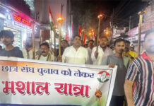 छात्र संघ चुनाव की मांग को लेकर एनएसयूआई की मशाल यात्रा